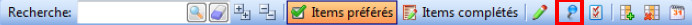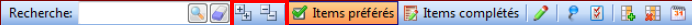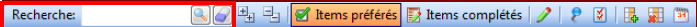 Vous pouvez chercher un item en vous positionnant dans un champ de recherche :
