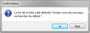 Si vous cliquez sur ‘Oui’, la recherche est relancée depuis le début de la liste. Si vous cliquez sur ‘Non’, la recherche est arrêtée.