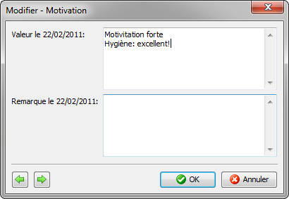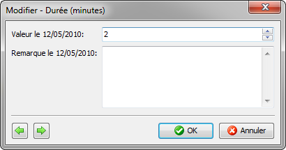 Vous pouvez introduire une valeur (et/ou une remarque) en double-cliquant sur une ligne ou en cliquant une seule fois sur le crayon.