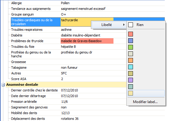 Dans la fiche clinique, vous avez également la possibilité de labelliser une valeur ou une remarque. P.ex. parce que cette valeur spécifique dévie de la valeur normale.