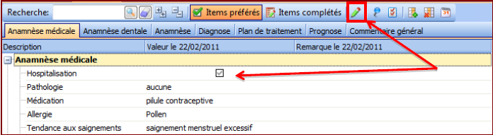 Après un certain temps, vous pouvez également introduire une deuxième ou une troisième… anamnèse. Pour cela, vous disposez des boutons suivants (encadré rouge) :