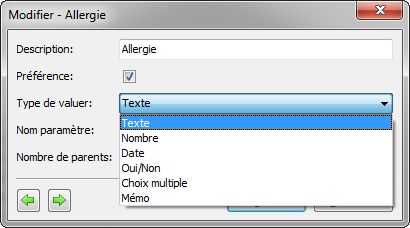IMPORTANT : si vous optez pour une liste proposant plusieurs choix, vous n’êtes pas obligé de sélectionner une valeur de la liste !Vous pouvez à tout moment introduire vous-même un texte sans que vous ne le sauvegardiez dans la liste.