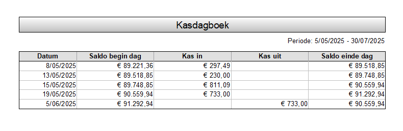 Le journal de caisse vous permet de suivre à la fois les mouvements de caisse entrants et sortants, et ainsi de tenir un aperçu quotidien de la caisse. Cela peut être affiché en détail ou résumé par jour.