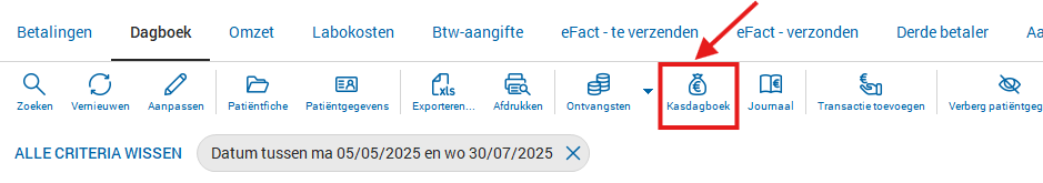 Pour obtenir un aperçu général par jour, vous pouvez sélectionner l’icône « Journal de caisse » en haut.