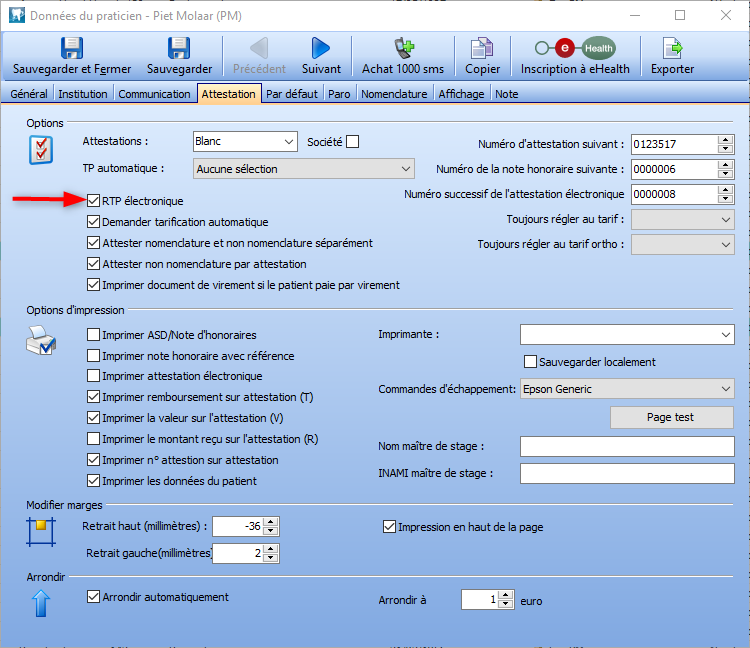 Vous trouvez ce paramètre chez Paramètres ==> Praticien dans l'onglet Attestation: