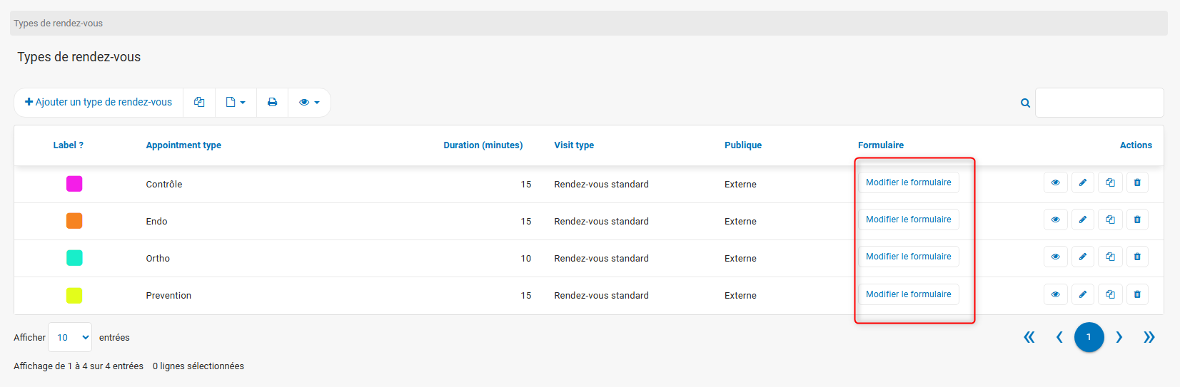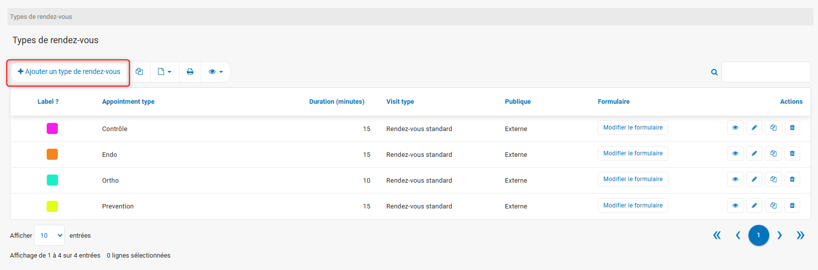 Le bouton Ajouter un type de rendez-vous permet de créer de nouveaux types de rendez-vous.