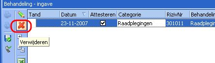 Indien u een behandeling wilt wissen die al reeds werd geattesteerd, moet u eerst dat getuigschrift annuleren, waarbij u ook onmiddellijk de behandelingen kan laten verwijderen. Klik hieronder op de link Hoe annuleer ik een getuigschrift voor verder informatie hierover.