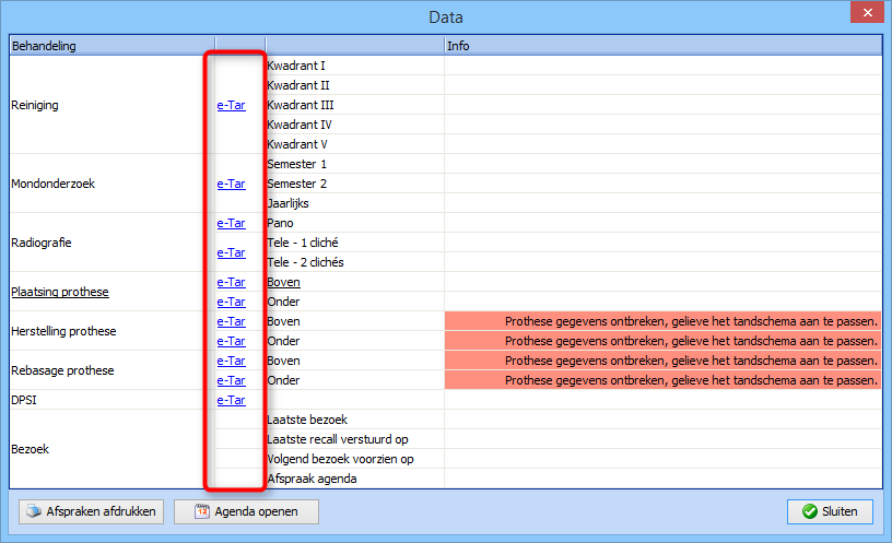 Vanaf versie 9.15 kan u als mondhygiënist ook eTar opvragingen uitvoeren.