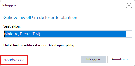 Indien u merkt dat het icoon niet automatisch groen wordt, kunt u dit ook handmatig activeren door op het icoon te klikken en vervolgens de optie 'noodsessie' te selecteren.