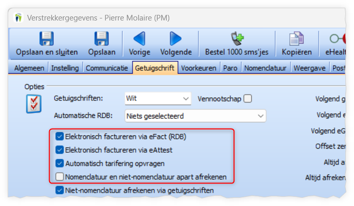 - Optioneel: Automatisch tarifering opvragen (aanbevolen, voor een correcte splitsing tussen tussenkomst en remgeld bij derdebetalers)