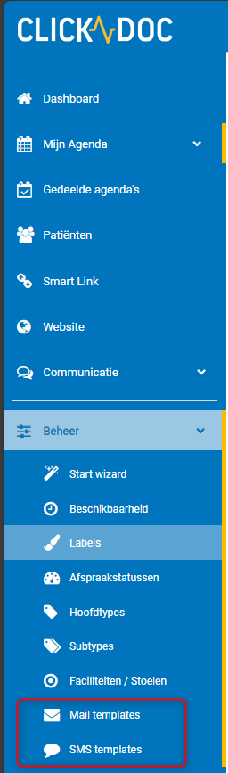- Deze mail/sms kunt u natuurlijk aanpassen naar jullie eigen smaak, hiervoor kan je terecht bij Beheer en daar bij Mail of SMS templates.